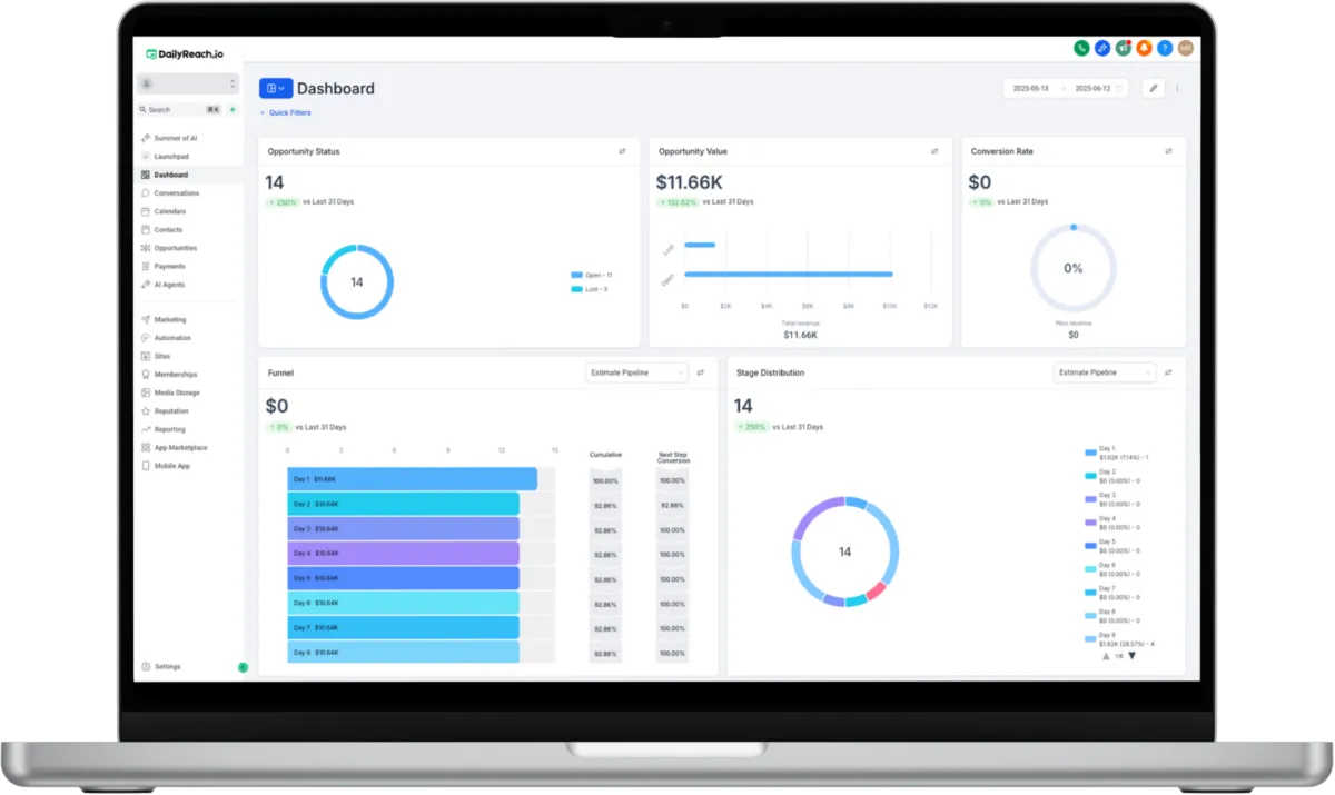 We built DailyReach.io to make your life easier—not more complicated. It’s everything you need to stay on top of your leads, keep conversations flowing, and grow your business without juggling a dozen different tools. Simple to use, easy to love, and made for the way you work every day.